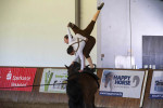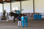 Im Anschluss steigerte sich der Schwierigkeitsgrad der Akrobatik zu Pferd noch einmal, denn um den ersten Preis der Firma Heimtierland/Happy Horse kämpften die Sportlerinnen und Sportler der Klasse S. Diese punkteten bereits mit zackigem Ein- und Auslauf in besonderer Formation und in der Kür mit schwierigen Hebefiguren und Pyramiden.