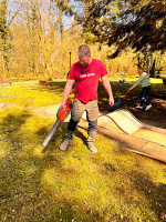 Dierdorf. Am Samstagmorgen um 9 Uhr begann der Arbeitseinsatz der Kirmesgesellschaft 1951 Dierdorf auf der Schlossinsel. Bei angenehmem Frühlingswetter machten sich zahlreiche Helferinnen und Helfer daran, das Gelände rund um die Minigolfanlage aufzuräumen. Eine Gruppe reparierte das Dach des Verkaufshäuschens, während andere mit Rechen und Besen das Laub entfernten. Obwohl der Platz nun gepflegter wirkt, sind noch weitere Arbeiten nötig, bevor er vollständig genutzt werden kann.