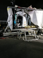 Durch den Auffahrunfall wurden vier Lkw ineinandergeschoben. Ein Fahrer musste von der Feuerwehr mit hydraulischem Rettungsgerät aus seinem Führerhaus befreit werden. Er wurde schwer verletzt dem Rettungsdienst übergeben, der mit einem großen Aufgebot vor Ort war. Zwei weitere Fahrer erlitten Verletzungen. In diesem Einsatz waren rund 60 Kräfte der Freiwilligen Feuerwehren involviert.