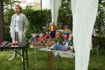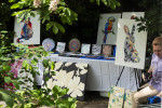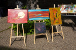 Mit der beschwingenden Musik von "ROCK WITH GROOVE" im Ohr, wandelten die Ausstellungsbesucher im Garten der Marktkirche und bewunderten viel farbintensive Acrylmalerei, Mosaikbilder, Specksteinarbeiten, Fotografien, die die schönen Seiten Neuwieds festgehalten, Kunstkeramik, Schablonenkunst, Schmuck und neurografische Gemälde. Dekorative und nutzbare Keramikobjekte, zum Beispiel Keramikfigürchen mit Hakenfüßen und originelle Drachen aus Pappmaché auf Blumenhockern und Handschmeichler aus Speckstein fanden viel Gefallen beim Publikum. Um und im Restaurant L’aperitif kann man liebevoll gestaltete Strick- und Häkelfiguren, Perlenketten, Mini-Acrylbilder und großformatige gegenständliche wie abstrakte Acrylgemälde kaufen.