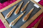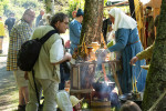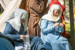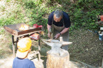 Das Ziehen von Bienenwachskerzen konnten Besucher ausprobieren, auch Tafeln, Griffeln und Spiele wurden von den Mitgliedern der Gruppe "Hortus ecclesiae" geduldig erläutert. Mit viel Fachkunde zeigte eine Expertin die unterschiedlichen Kopfbedeckungen für Frauen: Hauben, Schleier und Bänder, die den Zeitgenossen ihrer Trägerinnen einiges über die Damen verrieten. Die Kleidung im Mittelalter war keineswegs nur grau, Naturfarben waren für die Mehrheit erschwinglich. Auch Lederverarbeitung war ein gängiges Gewerbe, genau wie Schmiedearbeit. Nicht nur Waffenschmiede, auch Kunst- und Silberschmiede arbeiteten seit Jahrhunderten an der Esse. Zeitgenössische Produkte sind zum Beispiel kreativ gestaltete Kugelschreiber, Brieföffner und Eierbecher aus altem Silberbesteck.