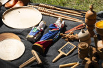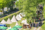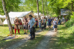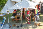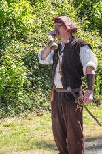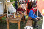 Lautstark machten Dudelsackbläser auf sich aufmerksam. Die Musikanten hatte sich mit unterschiedlichen Tartans zusammengefunden, vom lieblichen "Flower of Scotland" bis zum modernen "American Clan". Sie traten für die legendäre "Dame du Lac" und den König auf. In der Taverne und beim Söldnerlager waren Getränke erhältlich. Für Speisen und Getränke war reichlich gesorgt.
