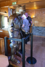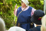 Ein kräftiges Signal mit dem Kuhhorn rief die Interessenten zu einer Burgführung mit dem "Hausherrn", dem Walpoden Rorich alias Eckhart Schneider nebst seiner Gattin Philippa (Bettina Rückert-Schneider). Sie erklärten die Aufgabe der Walpoden mit Polizeiarbeit inklusive lukrativer Gefangennahme von Delinquenten und Ausführen der Todesstrafe sowie die Teile der Burg: "Die Mauer rechts und links ist alt, der Asphalt ist neu." Dank der neuen Asphaltstraße ist der steile Aufgang mit modernem Schuhwerk leichter zu gehen.