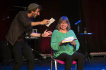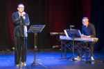 Boris Weber von der Freien Bühne Neuwied bot, unterstützt von Holger Kappus am Klavier, Teile seines Liederabend-Programms im tuntigen Outfit - Samtanzug, bunte Kette und goldene Plateauschuhe mit Absätzen - dar. Dazu passte natürlich nur Sekt, kein Wasser. Weber rechtfertigte sein Outfit, beim Jubiläum müsse ein bisschen Glitzer sein, außerdem singe er Lieder, die vorwiegend von Frauen gesungen würden. Zum Beispiel "Matrosen ahoi!" von Zarah Leander oder makabere Lieder von Heiner Bielefeldt: "Ich habe ja noch meine Lieder" und "Die Sportschau". Hildegard Knefs Song "Die Herren dieser Welt" passe wahnsinnig gut in diese Zeit, meinte Weber, bevor er "Die Rinnsteinprinzessin" sang. Zum Abschluss ihres Auftritts wurde es noch einmal lustig im Chanson "Flasch" mit Klaviersoli von Kappus.