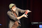 Toby Rudolph, der Deutsche Meister der Close up-Zauberei zeigte eine halbe Stunde lang äußerst verblüffende und lustige Tricks mit Tomate im Ballon, sich magisch teilenden und wieder verbindenden Seilen, Spielkarten- und Gedankenlesen-Experimenten und dem Geldschein einer Zuschauerin. Begeisterter Applaus war sein Lohn.