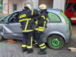 Ein Höhepunkt der Übung war der simulierte Löschangriff. Danach wurde an einem Pkw geübt, wie ein verletzter Fahrer möglichst schonend aus seinem Fahrzeug gerettet werden kann. Nach dem Einsatz von Spreizgeräten zur Öffnung der Fahrertür wurden beide Türen entfernt, gefolgt von der kompletten B-Säule, um eine große Seitenöffnung zu schaffen.