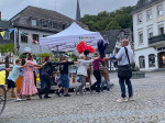 Auch programmtechnisch war einiges geboten: Dann und wann riefen die eigens engagierten Sambatänzer mutige Besucher zur Polonaise auf, am Marktplatz legte ein DJ Fiesta-Hits auf und auf dem Burgplatz sorgte ein Alleinunterhalter mit Classic Rock für Stimmung. Den Platz vor dem Rathaus funktionierten spielende Kinder schnell zum Bolzplatz um, nebenan stießen die Erwachsenen in den zahlreichen Cafes, Kneipen, Restaurants und den bestellten mobilen Lokalen auf ein Kaltgetränk an, lachten und vergnügten sich am sommerlichen Dekor.