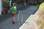 Die erste Station war das weltweit verbreitete Reifenspiel, bei dem ein Reifen mit einem Stock über eine vorgegebene Distanz in schnellstmöglicher Zeit getrieben werden musste. Das war für junge Menschen offenbar gar nicht so einfach, der Reifen entwickelte oft ein störrisches Eigenleben. Aber jeder Zieleinlauf wurde gebührend bejubelt. Im Vorteil war bei dieser Disziplin die Großelterngeneration, die in der Kindheit noch mit Reifen und Stöckchen durch die Gassen gejagt war.