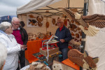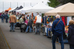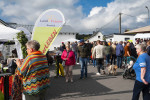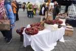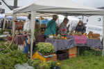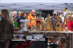 In der Marktzone waren neben Essensständen viele Stände mit Selbstgestricktem und Genähtem, Holz- und Bastelarbeiten, individuellen Geschenkartikeln, Karten, Metallarbeiten und Keramik sowie Blumen und Gestecke zu finden. Darunter waren Besonderheiten wie die länglichen „Torpedogarnelen“ am Fisch-Feinkost-Stand, schmutz- und wasserresistente Hundehalsbänder aus Biothane, handbemaltes Porzellan, kalt und warm nutzbare Rapssamenkisen, prächtige Wildbienenhotels und traditionelle Federfiguren am Holzstand.