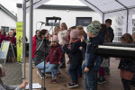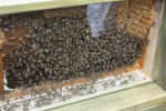 Ein lebendes Bienenvolk in einem Schaukasten zog – wie gewünscht – besonders Kinder an. Die große Bienenkönigin war an ihrem blauen Krönchen leicht zu finden. Die Farbe des Punktes gibt das Geburtsjahr an. In diesem Jahr sei der Honigertrag wegen des wechselhaften Wetters recht gut gewesen, meinte die Imkerin, aber das sei nur ein Nebenprodukt. Die Bienen dienen pädagogischen Zwecken.