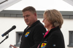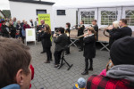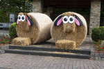 Am Dorfbrunnen begrüßten Schafe aus Strohballen die zahlreichen Besucher. Das Wetter spielte mit, zunächst war es trocken, am Mittag sogar sonnig. So leuchteten die Äpfel, Kürbisse und Herbstkränze in verlockenden Farben. Vor dem Dorfgemeinschaftshaus waren eine Bühne und ein Bereich mit Tischen und Bänken inmitten von Genussständen aufgebaut.