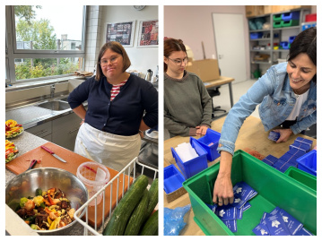 Besonders eindrucksvoll verlief der Arbeitsplatzwechsel für Sophia Kirst, eine Werkstattbeschäftigte des Heinrich-Hauses, die bereits Erfahrungen aus dem inklusiven Restaurant "Heinrich’s" mitbringt. Im Rahmen des Schichtwechsels arbeitete sie in der Küche einer Kindertagesstätte, die am Zertifizierungsprozess zur Ernährungs-Kita "3 Sterne für die Kita-Verpflegung" teilnimmt. Hier werden täglich 80 gesunde Mittagessen frisch zubereitet - mit einem klaren Fokus auf ausgewogene Ernährung, regionalen Produkten und moderner Küchentechnik. Sophia Kirst durfte das Team einen Tag lang tatkräftig unterstützen: Gemüse schneiden, Obstsalate zubereiten, bei der Speiseplanung mitdenken - und auch in Stoßzeiten die Übersicht behalten. Die stellvertretende Leitung der Kita Rommersdorf, Björn Ulbricht, zeigte sich begeistert: "Frau Kirst hat sich schnell in die neue Arbeitsumgebung eingefunden und erfüllt ihre Aufgaben mit Genauigkeit und großer Freude. Sie ist ein Gewinn für unser Küchen-Team." Vorstellbar ist, dass aus dem Schichtwechsel ein Praktikum entstehen wird - ein weiterer Schritt auf ihrem Weg in Richtung Außenarbeitsplatz.