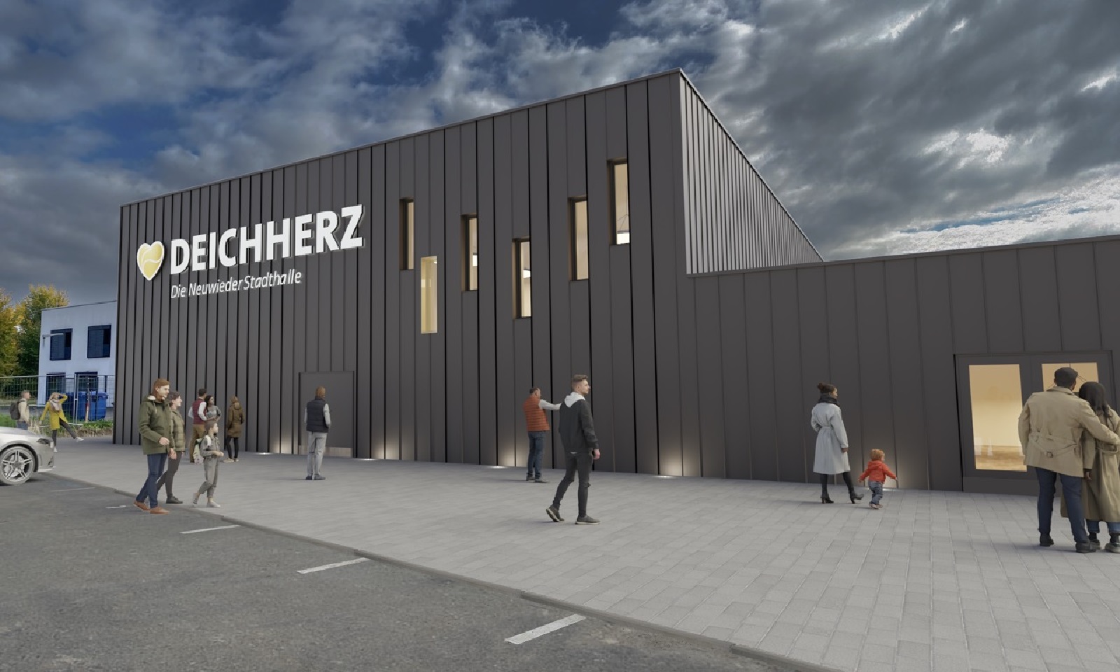 Neuwied. Die Stadtwerke Neuwied (SWN) haben ihrer neuen Veranstaltungshalle den Namen "Deichherz" gegeben. Der Name ist eine Anspielung auf den Spitznamen der Stadt, "Deichstadt", und die SWN-Ehrenamtskampagne "Herzenssache". Die Architektur und das Design der Halle spiegeln diese Verbindung wider und präsentieren sich in elegantem Anthrazit mit goldenen Akzenten.