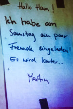 Unfassbar viele Notes gehören in die große Kategorie „Nachbarschaft“, zum Beispiel: „Welche Sau schmeißt wiederholt vollgeschissene Windeln aus dem Fenster?“ Kultcharakter hat der Zettel „Hallo Nachbarn. Ich feier heute n’bisschen! Wer Bock hat, kommt rum! Wird wohl lauter und länger! Also morgen früh bitte Ruhe!“
