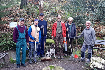 Rheinbreitbach. Mitglieder des Rheinbreitbacher St.-Josephs-Bürgervereins engagierten sich wieder ehrenamtlich, um die örtlichen Waldkreuze zu säubern. Sechs Mitglieder trafen sich, um das Virnebergskreuz, das Clothekeuz sowie den Virnebergsstollen von Laub, Unkraut und anderem Unrat zu befreien. Ausgerüstet mit Laubrechen, Schaufeln und Schubkarre kamen sie zügig voran. Nach Abschluss der Arbeiten fand das traditionelle Kaffeetrinken bei Anita Unkels statt. Red