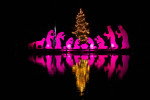 Der nächste Stopp auf der Wiedbrücke galt der viel fotografierten „Schwimmenden Krippe“ mit Weihnachtsbaum und wechselnder Beleuchtung. Diese Krippe mit 1,80 Meter hohen Figuren aus Holzplatten wurde zum 25. Bestehen des Weihnachtsdorfes errichtet. Der Weg führte weiter an der Wied in Richtung des Handwerksmuseums. Nachdem dort die Beleuchtung eines Adventskalenders eingeschaltet worden war, endete der Zug mit gemütlichem Beisammensein mit Glühwein und Döppekuchen.