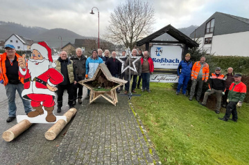Roßbach. Pünktlich zum Beginn der Adventszeit haben die Roßbacher Rentner wieder die Weihnachtsbäume in der Gemeinde geschmückt. An verschiedenen Orten wie dem Ortseingang, der Kirche und der Alten Schule erstrahlen nun festlich dekorierte Tannenbäume. In diesem Jahr haben sich einige Mitglieder etwas Besonderes einfallen lassen: Rainer Müller und Bernd Kötting fertigten drei lebensgroße Weihnachtsmänner an, die an markanten Punkten in der Gemeinde aufgestellt wurden. Hans-Peter Lehnert ergänzte die Dekoration mit einem überdimensionalen Stern mit integrierter Krippe, der in der Außenanlage der St. Michael Kirche zu bewundern ist.