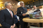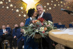 Eine besondere Überraschung gab es, als Frank Hachemer, Vizepräsident des Deutschen Feuerwehrverbandes, mit einer Abordnung der Feuerwehr die Bühne betrat. Er überreichte Breithausen die Deutsche Feuerwehr-Ehrenmedaille für seine Leistungen für das Feuerwehrwesen. Zum Abschluss bedankte sich Hans-Werner Breithausen für die vielen erfreulichen Wortbeiträge und den Weggefährten während seiner Amtszeit für die gute Zusammenarbeit. Ein ganz besonderer Dank galt seiner Familie und Ehefrau Petra, der er auf der Bühne einen großen Blumenstrauß überreichte.