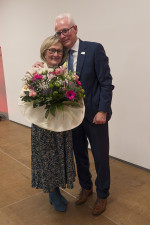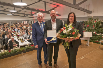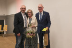 Zum Abschluss bedankte sich Volker Mendel für die vielen erfreulichen Wortbeiträge und den zahlreichen Weggefährten während seiner Amtszeit für die gute Zusammenarbeit. Ein ganz besonderer Dank galt seiner Familie und Ehefrau Dorothee, der er auf der Bühne einen großen Blumenstrauß überreichte und mehr gemeinsame Zeit versprach. woti