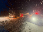 Sattelschlepper rutscht auf schneebedeckter B256 von der Fahrbahn