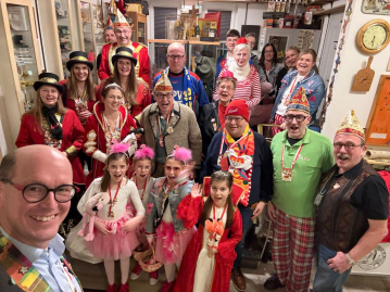 Rheinbrohl. Das Heimatmuseum ZeitGeschichte in Rheinbrohl war am Abend des Prinzessinnenempfangs so gut besucht wie nie zuvor. Gerhard Kühnlenz, der Inhaber des Museums, hatte zusammen mit seinem Team, bestehend aus Andreas Kossmann, Torsten Komar und Carsten Folkerts, die Hünnijer Prinzessin Sabine I. und die Rheinbrohler Kinderprinzessin Isabelle I. eingeladen. Begleitet wurden sie von ihren Teams sowie weiteren Freunden des Museums, die in den letzten zwei Jahren Unterstützung leisteten. Auch Verbandsbürgermeister Jan Ermtraud war unter den Gästen.