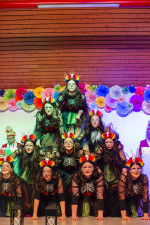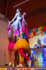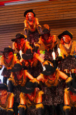 „Speedy Gonzales im Land der Kakteen“ hieß der Showtanz der Jugend, der mit flottem Tempo, synchronen Bewegungen und hohen Pyramiden bezauberte. Wunderschöne passende Kostüme und Masken präsentierten auch die Senioren mit „Dia de los Muertos -Wir feiern das Leben“. Ihr akrobatischer Tanz wurde mit Zugabe-Rufen und Applaus ebenso belohnt wie der Showtanz der Showgirls mit dem Motto „Der gestiefelte Kater“. Mit viel Akrobatik und gewagten Hebefiguren, für die einige Männer eigens die Lampen höher gehängt hatten, begeisterte der Tanz die Zuschauer. Für die männliche Unterstützung bei den Hebefiguren bedankten sich die Tänzerinnen bei Moritz Hörter von den Klosterbrüdern.