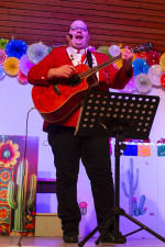Martin Schmidt, der bereits mit der Gitarre Karnevalslieder zum Besten gegeben hatte, sang zusammen mit dem Publikum am Ende der Sitzung das Lied „Karnevalsmaus“. Zum großen Finale versammelten sich alle volljährigen Aktiven auf der Bühne, was ein sehr eindrucksvolles, bejubeltes Bild ergab.