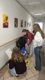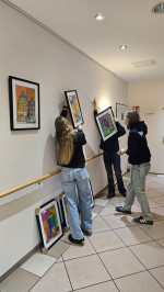 Ein weiterer Schwerpunkt der Ausstellung sind Neuinterpretationen berühmter Kunstwerke. Schüler der zehnten Klassen übertrugen zunächst Werke alter Meister auf Leinwand und gestalteten diese anschließend mit leuchtenden Acrylfarben neu. Durch den Einsatz unterschiedlicher Materialien wie Stoff, Knöpfe oder Wolle erhielten die Bilder zusätzliche Tiefe und Struktur – auch glitzernde Akzente kamen dabei nicht zu kurz.