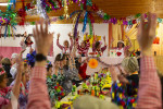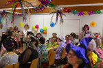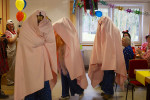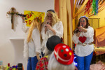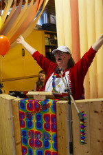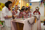 Schunkel- und Mitsinglieder brachten wiederholt Bewegung in die Menge. Viel Gelächter erntete die witzige Persiflage des Märchens „Aschenputtel“ als Riesenkasperltheater. Nach der zweiten Essenspause brachten Lisa und Sandra mit ihrem tänzerischen Auftritt gute Laune in den Saal.