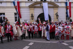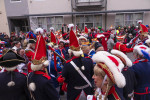 Die Ehrengarde, die Funken Rot-Weiß, das Husarencorps Blau-Gold und alle begleitenden Narren konnten im Anschluss in das warme Rathaus einziehen.