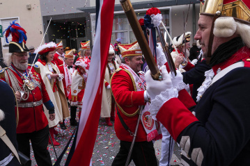 Der Neuwieder Straßenkarneval startete am Samstag. 14. Februar mit einem farbenprächtigen, lautstarken Angriff auf das historische Rathaus. Am Ende mussten sich die Stadtsoldaten der Ehrengarde der Übermacht fremder Truppen ergeben. Oberbürgermeister Jan Einig gab widerstrebend den Schlüssel ab, bevor er in Handschellen abgeführt wurde.
