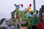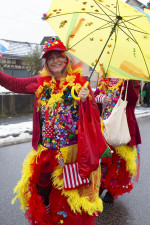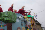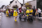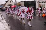 Die Kleinmaischeider Narren lassen sich durch einen griesgrämigen Wettergott ihren Rosenmontagszug nicht verdrießen. Nach einem strahlenden Vormittag ließen pünktlich zum Start des Zuges die aufgezogenen Wolken ihr Last herabfallen. Trotzdem zogen die Teilnehmer der 27 Zugnummern gut gelaunt und reichlich Kamelle werfend durch den Ort. Dekorativer Lagen-Look und Regenschirme machten es möglich.