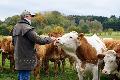 Im Anschluss an das theoretische Vormittagsprogramm wurde das Erlernte bei der Mutterkuhherde von Wilfried Vohl aus Elgert praktisch umgesetzt. Die Seminarteilnehmer konnten sich davon überzeugen, wie Philipp Wenz nach einer kurzen Kennenlernphase, die Herde durch beständiges Treiben mit Druck und Gegendruck über die Weide bewegte. Einzelne Tiere, die sich separierten, wurden dabei immer wieder in den Herdenverband eingebracht.