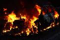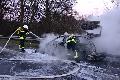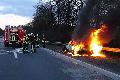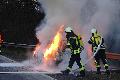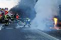 Die Insassen waren zu dem Zeitpunkt nicht mehr im Auto und blieben unverletzt. Beim Eintreffen der Feuerwehr war das Auto in Vollbrand und wurde von einem Löschtrupp mit Spezial-Löschschaum bedeckt, um die Flammen zu ersticken. Wegen der giftigen Gase, die beim Verbrennen von Treib- und Kunststoffen entstanden, trugen die Feuerwehrkameraden Atemschutzmasken. Die Qualm- und Rauchsäule war einige Kilometer weit zu sehen.