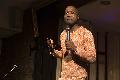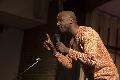Der Komiker hat keine Probleme mit dem Begriff „Neger“ und mit seiner Hautfarbe, im Gegenteil, er kokettiert ständig mit seiner afrikanischen Abstammung: „Euer Umfeld ist super: Schafe, viel Grün, Frischfleisch! Meine Vorfahren waren katholische Kannibalen, freitags gab es immer Fischer.“ Zur Unterscheidung von Weißen oder genauer schweinchenrosa Menschen und Schwarzen zitierte er seinen Opa, den letzten Schamanen im Dorf, der nackt auf einem Pfahl sitzt: „Gott gab dem weißen Mann die Uhr und dem Schwarzen die Zeit.“