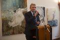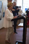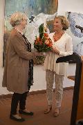 Die künstlerische Leiterin der Künstlergruppe „Farbenkraft“, Karin Luithlen, erläuterte die Arbeitsweisen der Malerinnen: „Wir malen nicht nur mit dem Pinsel, sondern mit allem, was uns in die Hände fällt: Stifte, Spachtel, Lappen, Schwämme, mit den Fingern, mit viel Wasser oder ganz ohne Wasser. Der Kreativität sind keine Grenzen gesetzt. Die Weg zum Ziel sind unterschiedlich: zuerst kommt die Idee, dann das Bild. Manchmal auch umgekehrt – das Bild entwickelt sich im Prozess des Malens. Manchmal entstehen ganze Serien zu einem Thema, manchmal ein einzelnes Werk.“