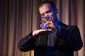 Eine ganz andere Überraschung bot Zauberkünstler Patrick Lehnen. Sein Programm entführte in das Zwischenreich von Fantasie, Traum und Wirklichkeit. Schon als kleiner Junge ging Lehnen der Frage nach: „Woher wissen wir, wann wir wach sind?“ Er wollte der Frage, was Wirklichkeit ist, auf den Grund gehen mit seinen Träumen und Erinnerungen in einem Einmachglas. Während der Zauberer erzählte, erschienen und verschwanden Münzen, drehten sich oder standen still. Der Lieblingstraum vom Fliegen ließ einen Geldschein Verwandlungen erfahren, schweben und fliegen, denn „von der Illusion zur Wirklichkeit fehlt manchmal nur ein Wimpernschlag oder auch ein Flügelschlag.“