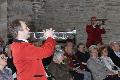 Über traditionelle Blasmusik des Marsch- und Polkagenres begeisterten die Musiker darüber hinaus auch mit Hits aus dem Bereich ‚Musical‘, ‚Rock und Pop‘ sowie schwungvollen Evergreens, in deren Rahmen natürlich auch anspruchsvolle Solonummern für ausgewählte Instrumente nicht fehlen durften. So begeisterte die junge Flötistin Charlotte Haacke durch ihre gefühlvolle Interpretation des Themas der gleichnamigen Filmmusik zu „Cinema Paradiso“ von Ennio Morricone – ein starkes Stück, wenn man bedenkt, dass die Musikerin gerade mal die 6. Klasse besucht und einen Bruchteil des Bestehens des Vereins miterleben und -gestalten durfte. Aber auch beim „Kleine[n] Echo“ (dargeboten von Marc Podschadly, Nico Staps und Tobias Lawsky, welcher es sich zur Feier des Tages nicht nehmen ließ, zu diesem Anlass den Dirigierstab aus der Hand zu legen und selbst noch einmal zur Trompete zu greifen) sowie dem spannungsgeladenen Bond-Song „The World is not enough“ der Saxophonistin Elisabeth Geisler konnten einzelne Musiker/-innen unter Beweis stellen, welchen hohen musikalischen Anspruch der Verein bereits seit Jahren immer wieder verwirklicht und für seine Zuhörer ansprechend umsetzt.