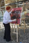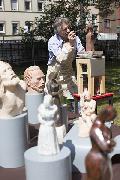 Neuwied. Dass die Marktkirche gerade eingerüstet ist, störte die dort ausstellenden Künstler gar nicht, das Gerüst wurde kurzerhand als Galerieleiste mit einbezogen. Nicht nur Astrid Müller hatte dadurch viel Ausstellungsfläche für ihre Acrylbilder. Viktor Neufeld arbeitete live an keramischen Plastiken und ließ sich dabei gern über die Schulter schauen. Genau wie die Malerin Monika Dörner, die sich freute, beim Arbeiten die eingängige Musik des Duos „Larimar“ im Ohr zu haben. Um die Marktkirche herum boten Künstler und Kunsthandwerker Werke in Stein, Metall, Kunststoff, Holz und verschiedenen Maltechniken an. Malerei dominierte im Innenstadt-Karree und brachte Industriebauten, Zäune und Hofeingänge zum Leuchten.