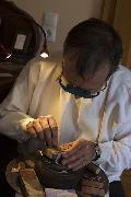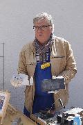 Co-Organisator Volker Frohneberg war ebenfalls im Karree unterwegs, um alle 65 Aussteller zu besuchen. Kontrast war im Historischen Rathaus angesagt, denn duftig-leichte Aquarelle von Karin Delaitre konkurrierten mit den pingelig genau gestalteten Intarsienbildern von Heinz Scholz. Mit Genauigkeit und feinen Gerätschaften arbeitete auch Goldschmiedemeister Axel-E. Hoffmann, der in der ehemaligen Bäckerei Lohner das Gravieren vorführte. Der Kupferstecher hatte einige seiner feinen Stichel aus gehärtetem Stahl sogar selbst hergestellt. Silberschmuck, Keramikfiguren und Gemälde komplettierten die Ausstellung.