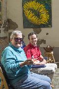 Organisator Ulrich Adams besuchte seinen Freund Alfred Kreutzberg in der neuen Location, dem Hof Weland in der Rheinstraße. Dort stellte der Bad Honnefer Galerist Kreutzberg freundliche bunte Vögel und diverse Ansichten vom Drachenfels aus. Dazu hatte die Fotografin Marie Schäfer ein farbenfrohes Stillleben mit Fotografien und Fotobüchern arrangiert.