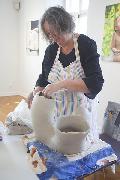 Am Sonntag, dem 14. Mai arbeiteten die Keramikerinnen Marianne Dick und Sigrid Langert vor Ort mit Tonmassen. Marianne Dick baute dickwandige organische Formen auf, aus deren Wänden sie zur Gewichtsreduktion in kreisrunden Löchern Masse entnahm. Fertige Objekte waren neben ihrem Arbeitsplatz ausgestellt.