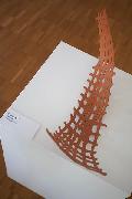 Sigrid Langert verarbeitete von Anfang an die gewichtige Modelliermasse wie feines Porzellan, indem sie feine vorgepresste Tonstränge zu präzisen architekturhaften Strukturen zusammensetzte. Um die filigranen, sehr zerbrechlichen Gebilde unversehrt in den Brennofen setzen zu können, hat sie eigene Hilfsmittel entwickelt. Die in der Ausstellung zu sehenden geschwungenen Formen geraten durch hohe Temperatur im Brennofen in Bewegung und erhalten dadurch eine tänzerische Anmutung.