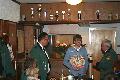 Inzwischen waren die Teilnehmer hungrig geworden. Das Schießen wurde unterbrochen und man setzte sich zum Abschiedsmahl des scheidenden Königs. Hans-Werner servierte ein leckeres Essen, und nachdem auch der Nachtisch geschmeckt hatte, ging man an die weitere Zerlegung des Adlers.