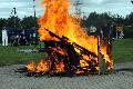 Dann war die Dienstwache, die auch während des Festes den Brandschutz aufrechterhielt, an der Reihe. Die Kameradinnen und Kameraden demonstrierten das Vorgehen bei einem PKW Brand. So konnten die Zuschauer sehen wie schnell sich ein Fahrzeug mit giftigen Brandgasen, hier Rauchpulver, füllt. Mit einem Spezialwerkzeug wurden die Seitenscheiben geöffnet und das Innere abgelöscht. Im Anschluss wurde der Innenraum mit der Wärmebildkamera kontrolliert. Weiter zeigten die Kräfte das Öffnen der Tür mit dem Spreizer. Im Anschluss konnten Interessierte, unter Anleitung, auch einmal mit der Rettungsschere arbeiten. Viele wussten wohl vorher nicht, dass dies kein Kinderspiel ist, wie oft zu hören war.
