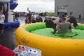 Auf dem Vorgelände des Unternehmens war eine große Hüpfburg aufgebaut, die bei den Kleinen äußerst beliebt war. Die Größeren und Erwachsen versuchten sich direkt nebenan beim Bullriding. Immer wurden dort Handys gezückt, um die Aktion in Bild oder Video festzuhalten. Viel Spaß und Gelächter gab es auch beim Stiefelweitwurf, der rückwärts durch die Beine ausgeführt werden musste. (woti)