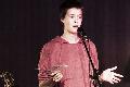 Im spannenden Finale zog dann die Koblenzerin Kathi Hopf noch an Jan Coenen (Bonn) und Axel Gundlach (Frankfurt) vorbei. Für sie gab es tosenden Applaus. Der Auftritt der Poetry-Slammerin zum Thema Freundschaft überzeugte nicht nur durch gekonnt gesetzte Pointen, sondern auch durch das überzeugende Minenspiel. Als Preis konnte Kathi Hopf eine Packung Klebebärte in zwei unterschiedlichen Farben einstreichen. Während der kurzen Pausen präsentierte Lokalmatador Thilo Distelkamp eigene Songs.