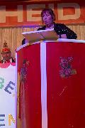 In der Bütt machte die routinierte Karnevalistin Sigrid Wendt wieder einmal den Eisbrecher mit einer Tratsch-Rede über die lieben Mitmenschen. Zielscheiben ihres Spotts waren unter anderen die Herren des Elferrats, insbesondere Präsident Martin Schmidt, dem ein Stopp-Schild an der Leiter zum Verhängnis wurde, der Großmaischeider Bürgermeister Uwe Engel, der sich über eine Brücke im Kleinmaischeider Feld wunderte, der „Big Boss“ der VG, Horst Rasbach, der mit seinem Puderbacher Kollegen auf einer Besichtigungstour unterwegs war oder auch Tochter Petra Flammersfeld, die Vorsitzende des Karnevalsvereins. Wendt erntete mit dem Tratsch reichlich Lacher und Applaus.
