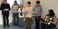 Viel zu schnell verging die Zeit bei Sketchen wie „ist das ein viereinhalb Minutenei“ mit Wolfgang Kunz und Angelika Geyer oder „das Quiz“ mit Wolfgang Kunz und Elke Reidenbach. Köstlich auch die Darbietung von Elke Reidenbach, Werner Lindecken und Elke Asbach bei dem Stück „Durchreisende Schlawiner – Lebenshilfe für Paare“. Wahre Lachsalven erzeugte dann der Sketch „Bauer Gerd“, köstlich gespielt von Angelika Geyer und Wolfgang Kunz. Nach einem letzten gemeinsamen Liedvortrag ging die Neujahrsgesellschaft dann gut unterhalten nach Hause