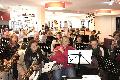 Darauf folgte am 31. Januar die zweite offene Probe für den Musikverein in der Jugendherberge Kloster Leutesdorf. Ganz im Zeichen des Karnevals wurde die Probe mit einigen Karnevalsliedern eröffnet. Unter anderem spielten die Musiker ein Medley von der Band Brings und die Gäste sollten erraten welche Lieder zu hören waren. Diese Aufgabe wurde mit Bravour gemeistert. Anschließend bekam das Orchester ein Liedblatt mit einem Kanon verteilt, bei dem es galt die Tonleiter zu spielen. Währenddessen fand der Dirigent Andreas N. einen jungen Mann unter den Gästen der Trompete spielen kann und sich in die Reihen setzte. Er versuchte sich gemeinsam mit den Blau-Weissen an dem Kanon. Nach einem kurzen Einspielen und Kennenlernen der Noten wurde das Orchester entsprechend der Sitzreihen aufgeteilt, um das Lied im Kanon zu spielen. Jetzt galt es auch für die Gäste mitzumachen und Andreas verteilte Trommeln an alle. Er gab den Besuchern zu den Tönen des Kanons einen Rhythmus vor und mit großer Begeisterung und Ehrgeiz wurde mitgemacht.